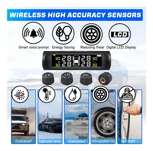 Sistema Monitoreo Presión Neumáticos Auto Carga Solar Tpms