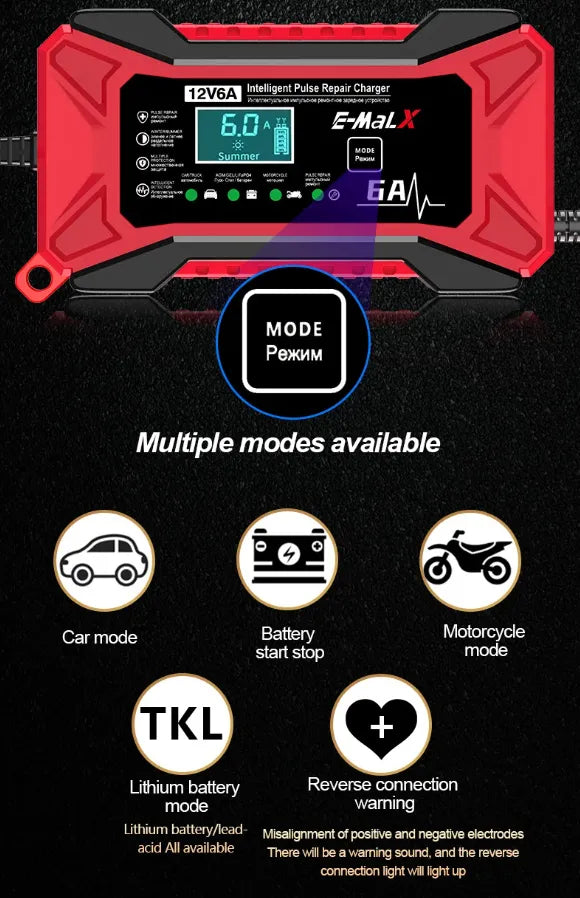 El Cargador Batería Inteligente y Rápido para Autos y Motos 12v es la solución ideal para mantener tus vehículos siempre listos para la acción. Con una corriente de salida de 6 A, este cargador garantiza una carga eficiente y rápida, permitiéndote disfrutar de un rendimiento óptimo en cada viaje. Diseñado para ser fácil de usar, este cargador es perfecto tanto para automóviles como para motocicletas, adaptándose a tus necesidades de movilidad. Su tecnología inteligente asegura que la batería reciba la carga adecuada, prolongando su vida útil y mejorando su rendimiento. El modelo 1 de la línea BATERIA destaca por su robustez y fiabilidad, convirtiéndose en un aliado indispensable para quienes valoran la seguridad y el rendimiento de sus vehículos. Con un diseño compacto y funcional, es fácil de almacenar y transportar, ideal para llevar en viajes largos o para tener en casa. Con el Cargador Batería Inteligente y Rápido, estarás siempre preparado para salir a la carretera sin preocupaciones. Aumenta la eficiencia de tu vehículo y disfruta de la tranquilidad que ofrece un cargador de alta calidad.